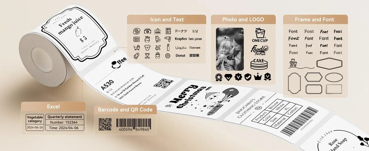 ✔ Imprime etiquetas personalizadas com textos, códigos de barras, QR Code, preços, logos e ícones